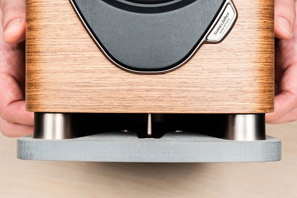 Sonetto I G2 还有一个很特别的设计,那就是它的低音反射孔。低音反射孔位于音箱底部,但原厂又在音箱本体下方加装一个混凝土的底座,透过底座构成反射,再从前方导出气流。原厂表示,这样的设置,可以让音箱即便靠墙摆放,甚至被迫靠近墙角,也能有干净的低音。箱体内部还有秘密。里头加装了称为 Intono 的技术,这个技术也来自于 Sonus Faber 的高阶音箱。透过在箱内加装一个共鸣空间,好降低箱内的共鸣峰值,进而达到使中频听起来更干净、更清晰。