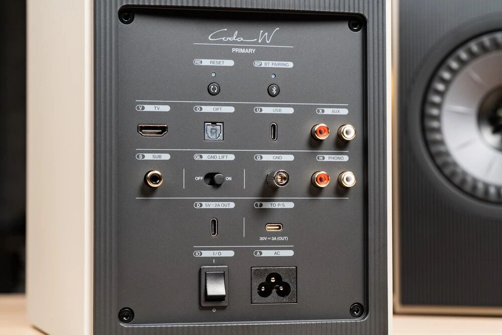 左右声道采用 USB 更方便 Coda W 左右音箱的联机使用USB-C,这太有创意了,通常相对平价的主动音箱,多半区分为主音箱与副音箱,放大线路都摆在主音箱里面,用普通红黑线连接,而且大部分是裸线,用便宜的压夹端子固定,超级阳春。